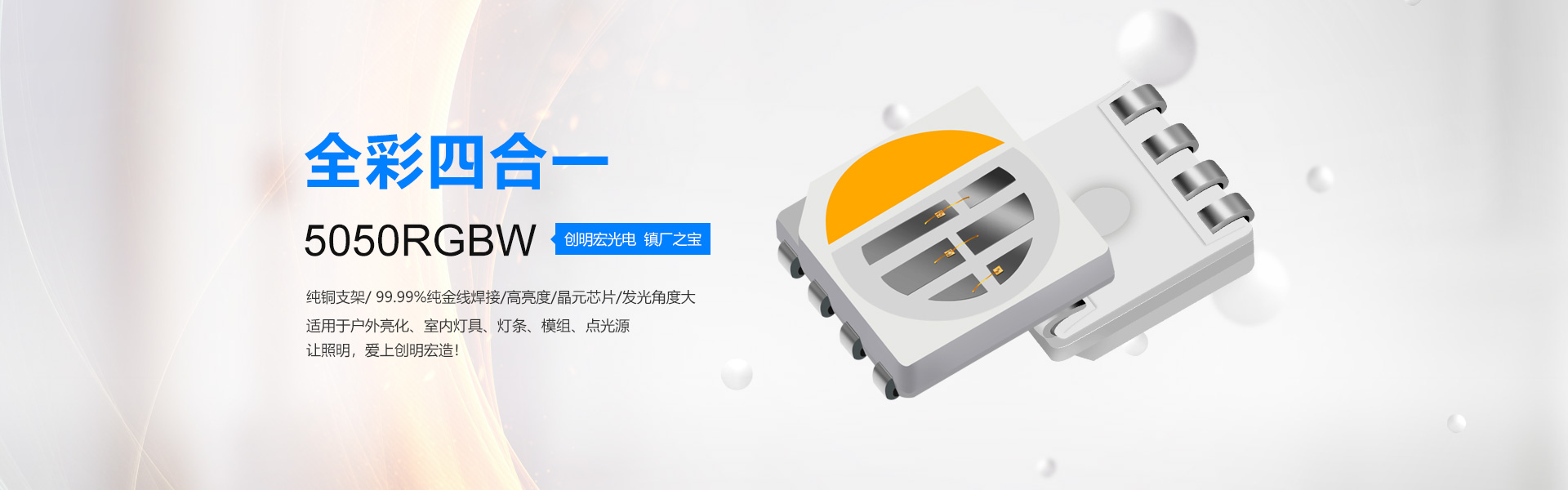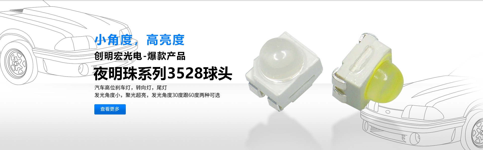 公司率先開發適用于汽車專用光源3528凸頭“夜明珠系列”(30-60度)以及替代傳統插件燈珠,0603、0805、1206凸頭系列,徹底解決貼片燈珠發光角度大,亮度低等缺陷。針對戶外亮化開發出“防水”系列5050RGB,3535RGB和白光。